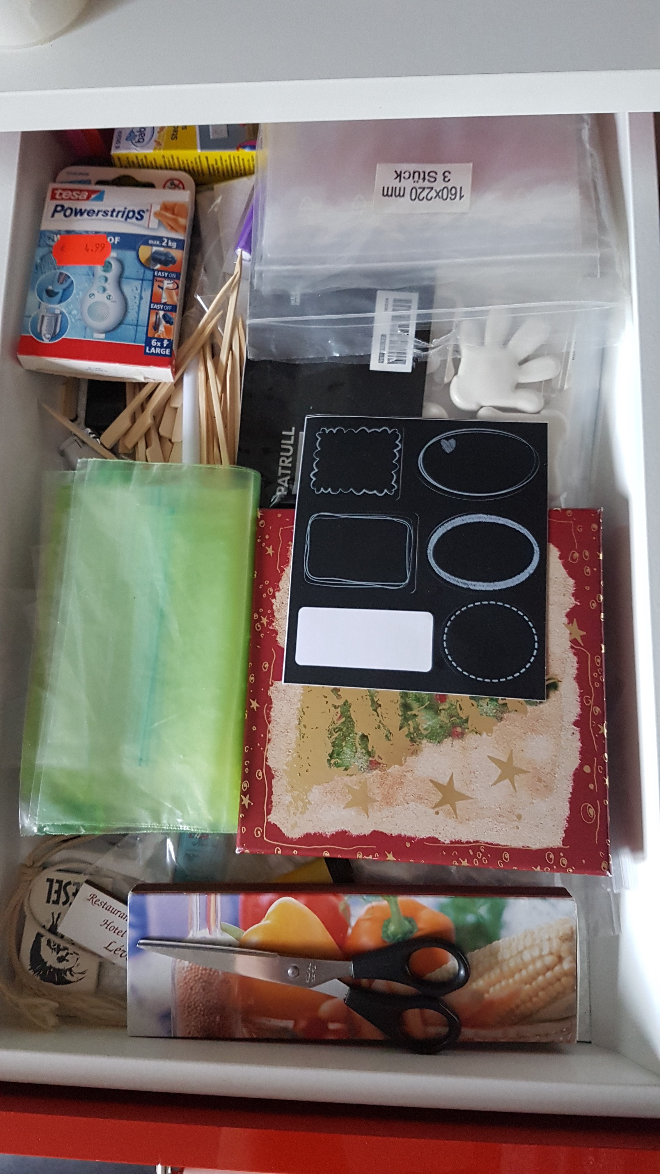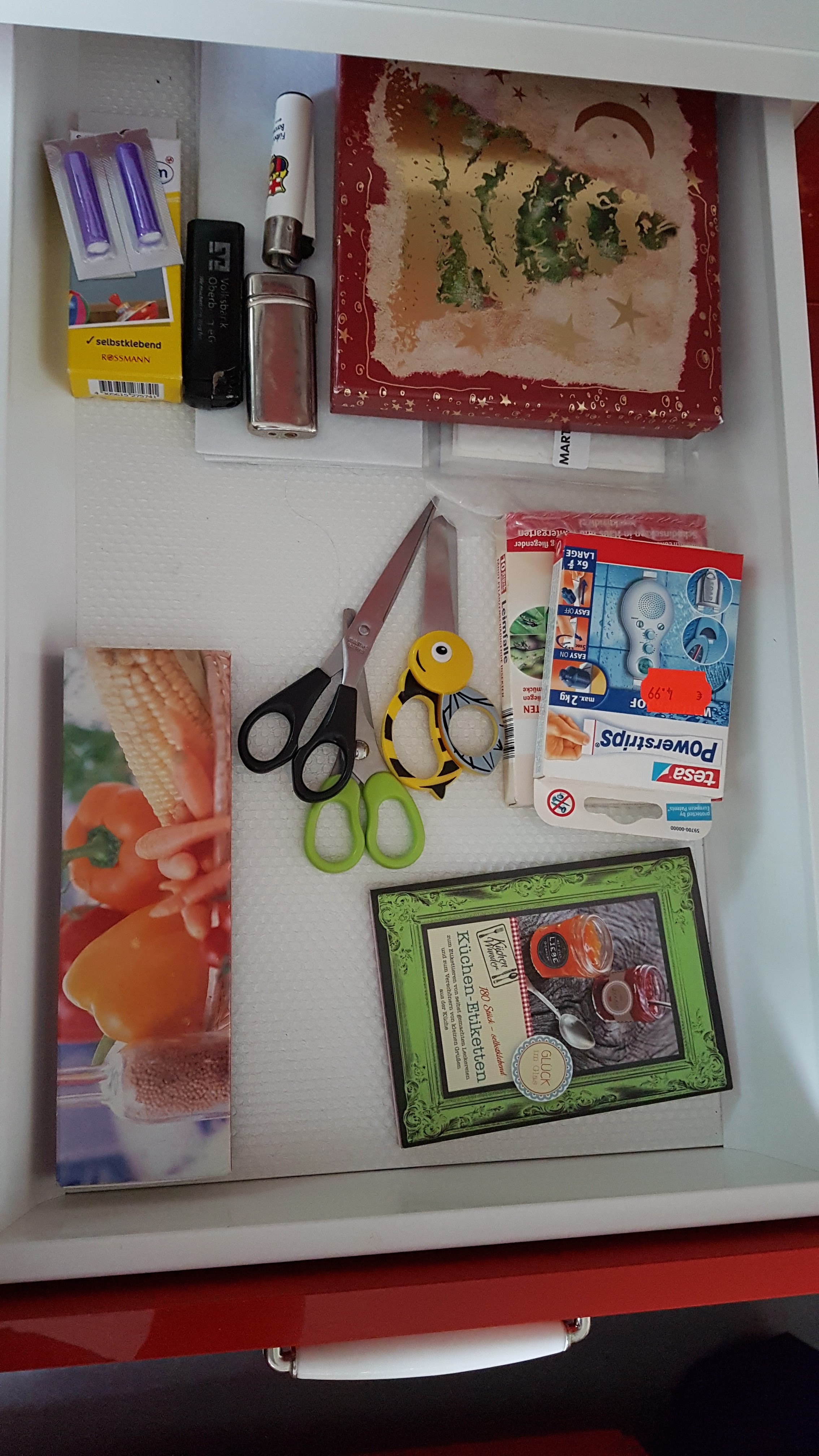 Für den nächsten Bereich werde ich dann wohl länger brauchen. Nun kommt Kram. Eigentlich gehört dazu fast alles. Aber auch hier soll man in Kategorien sortieren wie z.B. CDs und DVDs, Kosmetik und Pflegeartikel, Geräte, Hausapotheke oder die Küche.